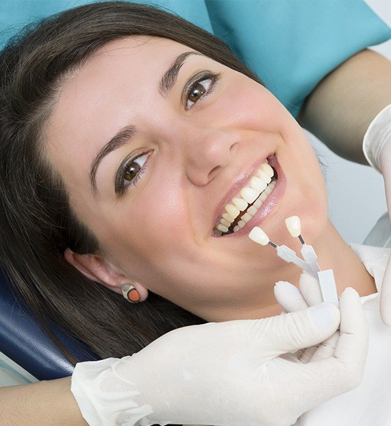 Veneers can quickly and dramatically change your smile in as little as two appointments. They are thin, durable shells that can be crafted from dental porcelain or composite resin to fit over the visible surface of your teeth to conceal a variety of flaws, including dental damage, gaps, and slight crookedness. You can get just one or an entire set to achieve a fast, stunning, and lasting makeover.